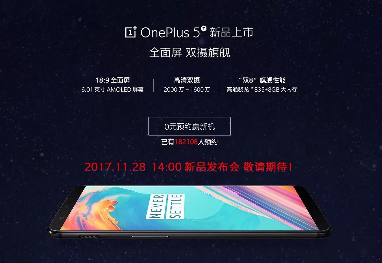 1、發(fā)布時間:經(jīng)過多次傳聞和猜測,一加5終于在一加官網(wǎng)的發(fā)布會上正式向全球發(fā)布,這一時刻,標志著該產(chǎn)品正式進入市場預(yù)熱階段。