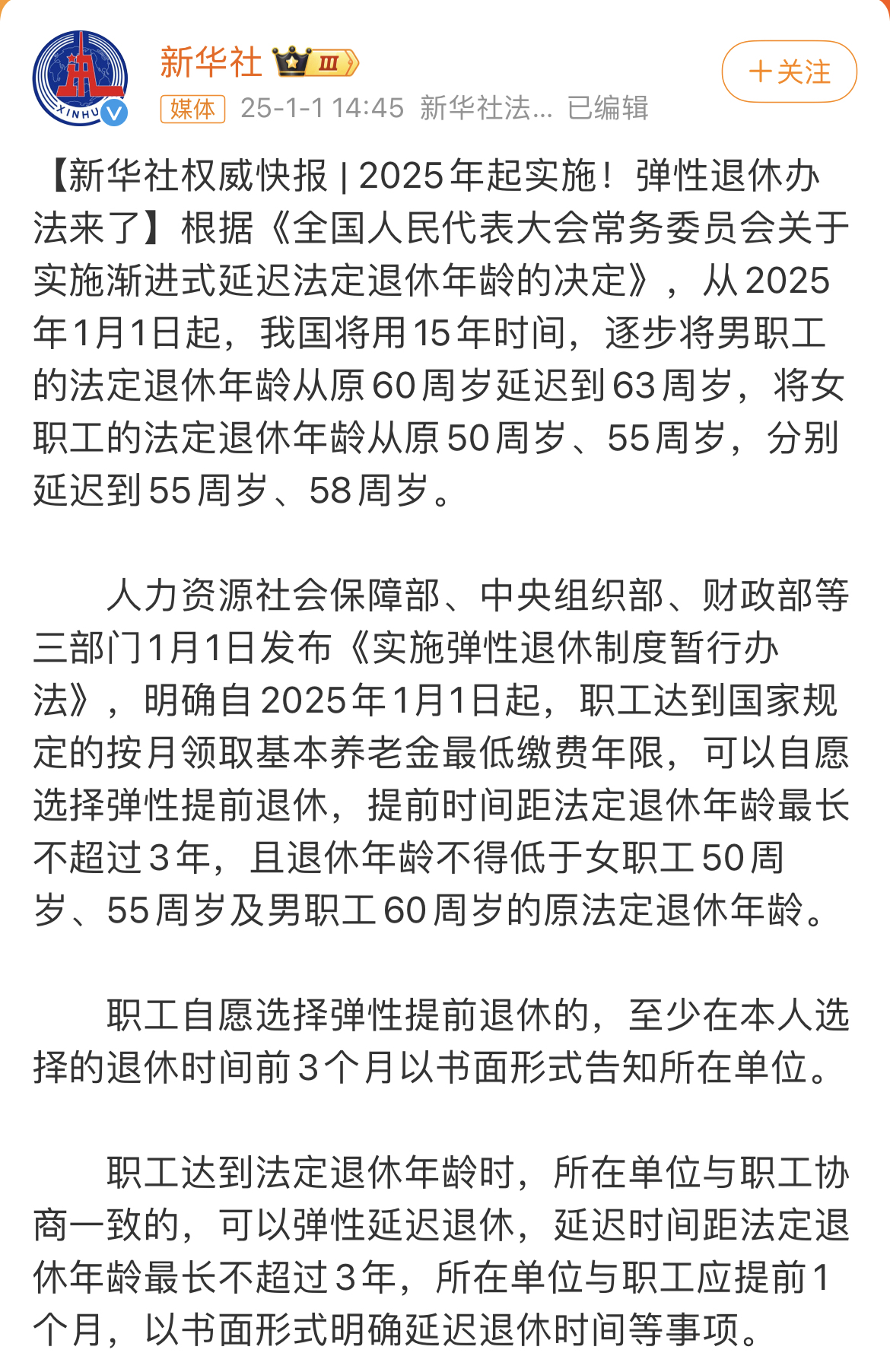 經(jīng)過多年的研究與探討,我國推出了退休最新政策,這一政策在廣泛征求意見的基礎(chǔ)上,經(jīng)過多次修改和完善,最終得以實施,標(biāo)志著我國退休制度的進(jìn)一步改革,為應(yīng)對老齡化社會提供了有力支持。