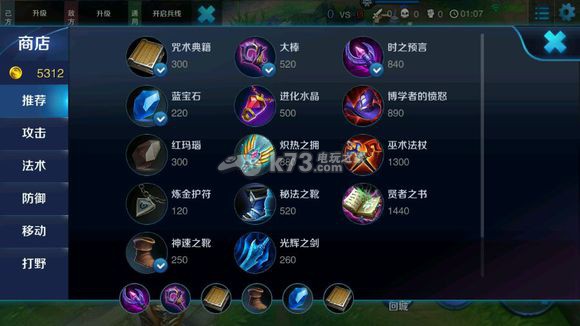 6、賢者之書:提供高額的法術攻擊和額外的法術加成,使露娜在后期擁有毀天滅地的能力,成為戰(zhàn)場上的絕對核心。