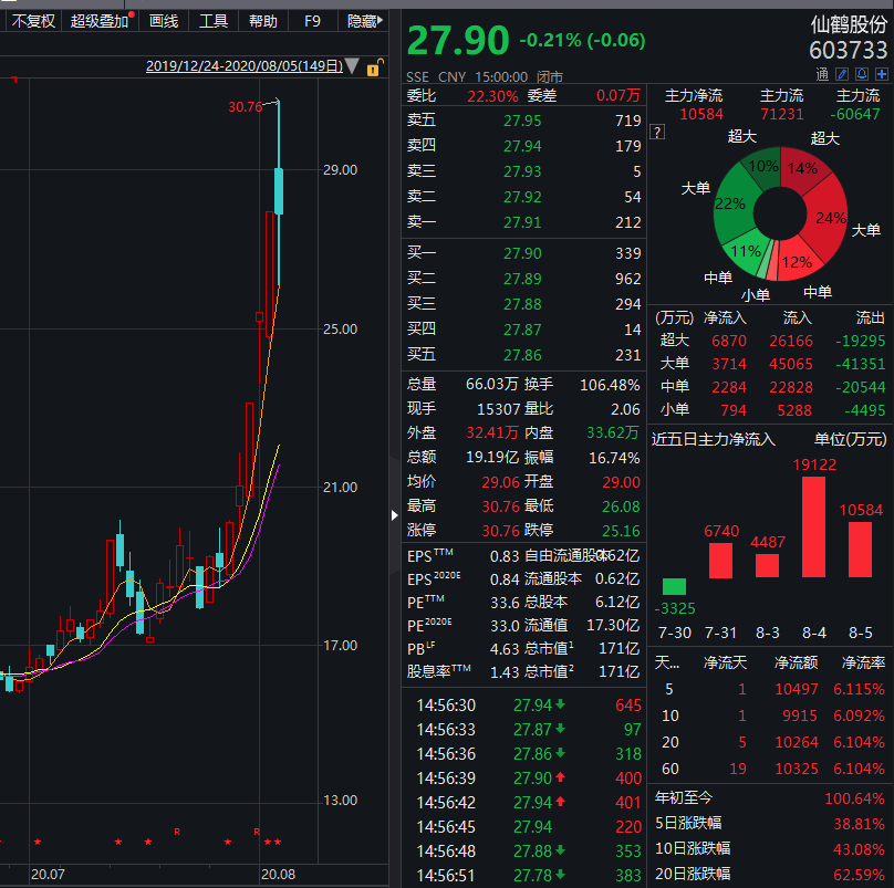 從近期的走勢來看,仙鶴股份的股票呈現(xiàn)出穩(wěn)健上升的態(tài)勢,在股市的波動中,仙鶴股份始終保持著穩(wěn)定的業(yè)績和強(qiáng)大的市場競爭力,這得益于公司不斷創(chuàng)新、追求卓越的精神以及良好的市場口碑,公司的財務(wù)狀況良好,為投資者提供了堅實的保障。